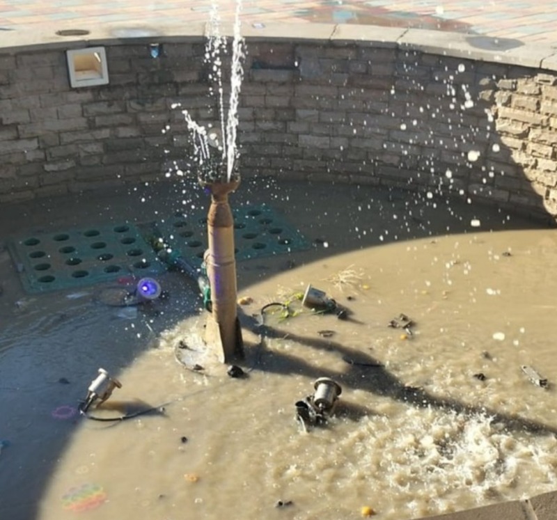 В очередной раз пострадал фонтан, расположенный у детской площадки в микрорайоне им. Лавочкина. Как сообщает пресс-служба мэрии, повреждены форсунки объекта, а в его чашу накидан мусор.