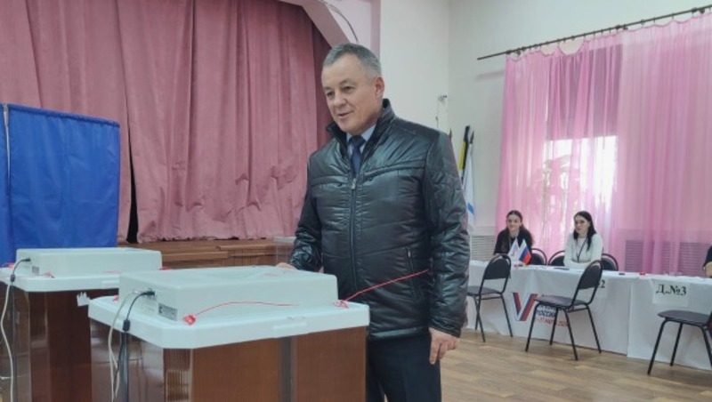 Гражданский долг сегодня выполнил глава Ахтубинского района Владимир Михед. По информации участковой комиссии, он пришёл на 535 участок, который находится в центре детского творчества, в половине десятого утра, чтобы отдать свой голос за Президента РФ. Получив бюллетень, глава муниципалитета тайно и быстро поставил галочку и опустил документ в КОИБ.